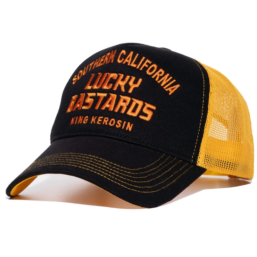 Trucker-Cap mit grosser Frontstickerei Snapback-Verschluss Material: Front 100% Baumwolle, Netz 100% Polyester Der auffällige Lucky Bastards Stic...