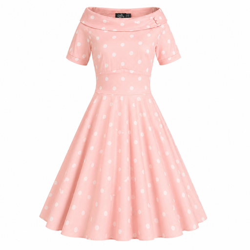 Swingkleid in Hellrosa mit weissen Tupfen U-Boot-Kragen mit zwei Zierknöpfen Verdeckter Reissverschluss seitlich Material: 95% Baumwolle, 5% Elast...