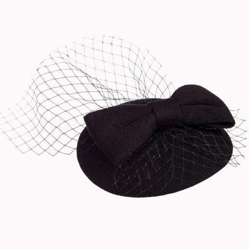 Schwarzer Fascinator mit Masche Dieser Fascinator in klassischem Schwarz begeistert mit einer stilvollen Schleife und feinem Netzschleier für einen...