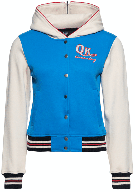 College-Sweatjacke mit plakativer Stickerei auf dem Rücken femininer Regular Fit Druckknopfleiste in der Front Kapuze mit Reissverschluss lässt si...