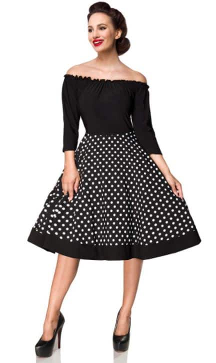 Schulterfreies Retrokleid mit Tellerrock Ausschnitt mit elastischem Gummibündchen halblange Ärmel aus feinem, elastischem Jersey Material: 80% Pol...