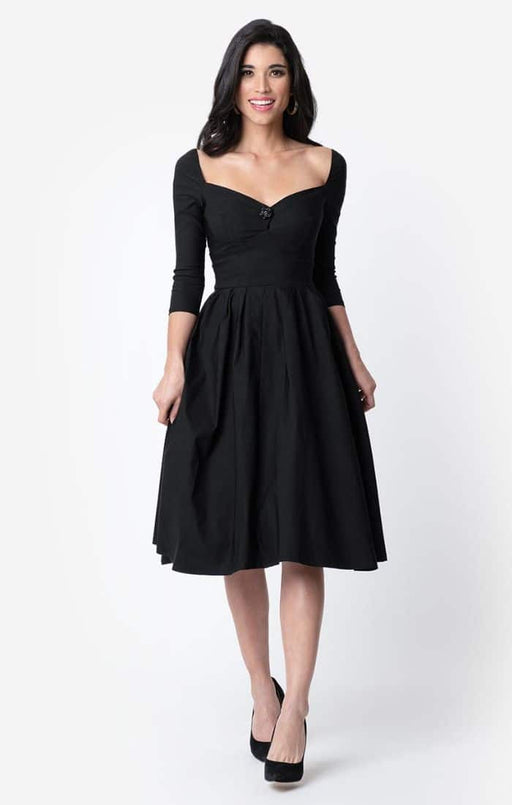 Traumhaftes Swingkleid in Schwarz wunderschöner Sweetheart-Ausschnitt kleine Kunststoffrose in der Mitte des Ausschnitts tiefer Rückenausschnitt 3/...