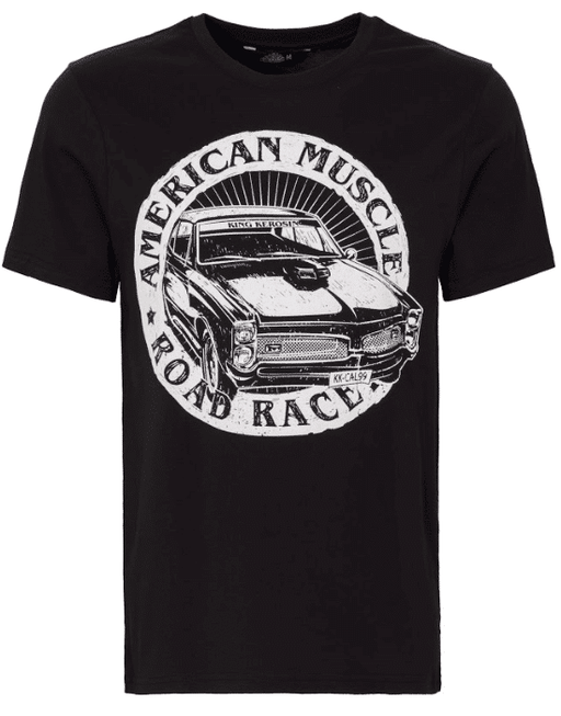 Herrenshirt mit amerikanischen Muscle Car - Motiv Grundfarbe Schwarz Gerade Passform (Regular Fit) Rundhalsausschnitt Material: 100% Baumwolle