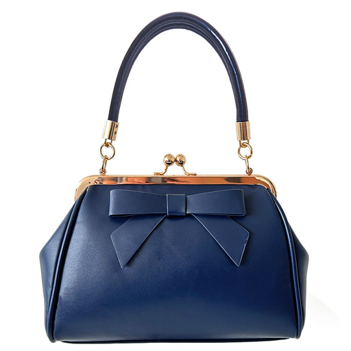 Vintage-Handtasche mit hübscher Zierschleife in Navyblau Kiss Lock-Verschluss Masse: Breite 26 cm, Höhe 19 cm, Tiefe 11 cm Material: Kunstleder (P...