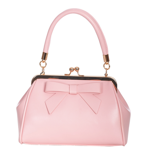 Vintage-Handtasche mit hübscher Zierschleife in Rosa Kiss Lock-Verschluss Masse: Breite 26 cm, Höhe 19 cm, Tiefe 11 cm Material: Kunstleder (Polyu...