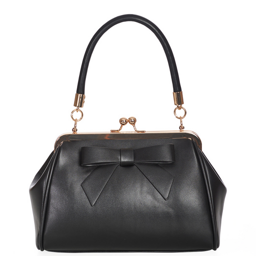 Vintage-Handtasche mit hübscher Zierschleife in Schwarz Kiss Lock-Verschluss Masse: Breite 26 cm, Höhe 19 cm, Tiefe 11 cm Material: Kunstleder (Po...