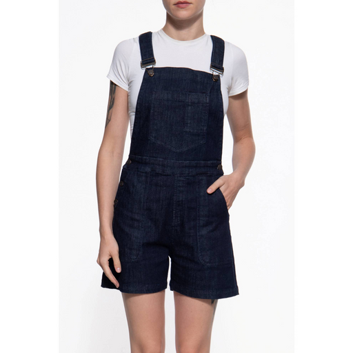 Kurze Jeans-Latzhose im Workwear-Stil Leichtes, elastisches Denim-Material für optimalen Komfort Verstellbare Crossback-Träger und seitliche Metal...
