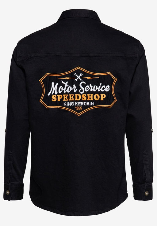Authentisches Workwear-Hemd in Schwarz hochwertige grosse Stickerei auf dem Rücken, kleinere auf der linken Brust metallene Logknöpfe bequemer Stra...