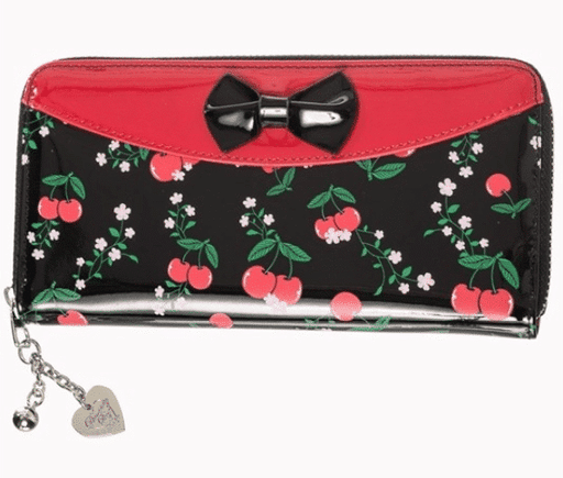Geldbörse in Lackoptik mit süssen Kirschen mit schwarzer Zierschleife viele Innenfächer zusätzliches Fach mit Reissverschluss hübscher Herzanhänger...