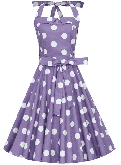 Neckholderkleid in Lila mit weissen Polka Dots Sweetheart-Ausschnitt Material: 97% Baumwolle, 3% Elasthan Passende Petticoats (60 cm Länge) findest...