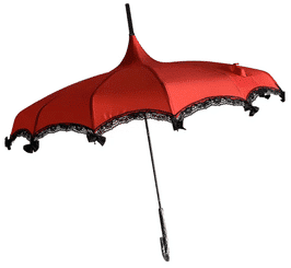 Vintage-Schirm in Rot mit schwarzer Spitze und Mäschchen Gewicht: 500 g Durchmesser: 95 cm Griff aus Plastik Material: Polyester