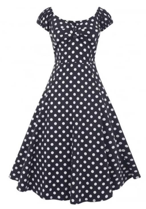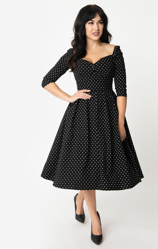 Traumhaftes Swingkleid in Schwarz mit weissen Tupfen wunderschöner Sweetheart-Ausschnitt Zierknopf am Ausschnitt tiefer Rückenausschnitt 3/4- Ärmel...