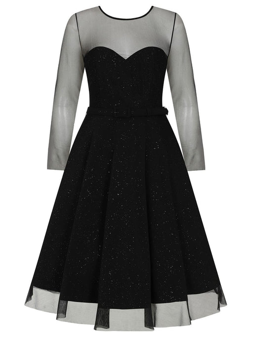 Traumhaftes Swingkleid mit Glitzer glitzernder Netzstoff auf schwarzem Unterkleid 3/4- Ärmel Sweetheart- Halslinie V- Ausschnitt auf der Rückseite ...