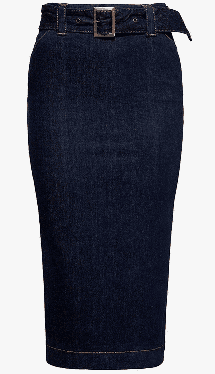 Bleistiftrock aus dunkelblauem Denim mit Gürtel hoher Bund Material: 98% Baumwolle, 2% Elasthan