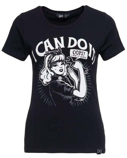 T-Shirt mit tatkräftigem Pin up-Aufdruck grosser V-Ausschnitt Material: 100% Baumwolle