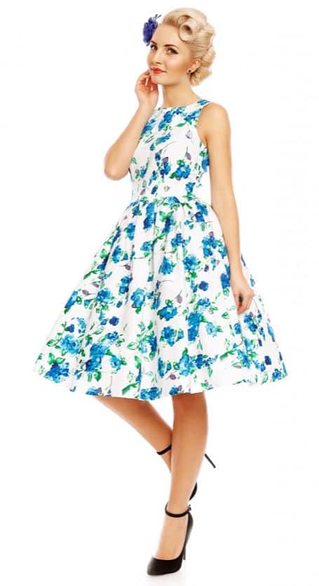 Weit schwingendes Kleid mit Bootsausschnitt floraler Print aus weicher Baumwolle Material: 97% Baumwolle, 3% Elasthan Hier findest du passende Pett...