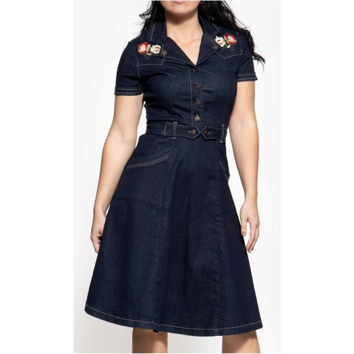 Vollständige Details anzeigenQueen Kerosin Jeanskleid mit Blumenstickereien