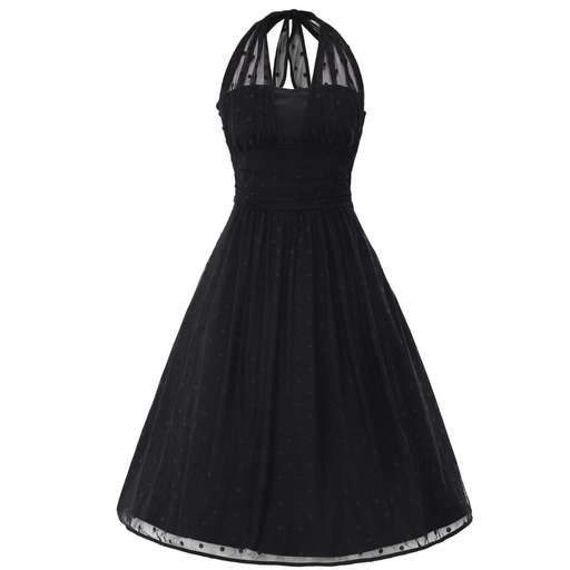 Glamouröses schwarzes Neckholder-Kleid seitlicher Reissverschluss Material: 97% Baumwolle, 3% Elasthan Hier findest du passende Petticoats: Pettic...