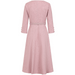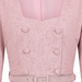 Erlebe authentischen Vintage-Charme in Rosa: ein wadenlanges Kleid mit eckigem Herzausschnitt, stoffbezogenen Knöpfen vorne und an den Dreiviertelärmeln. Der passende Gürtel betont die Taille und setzt stilvolle Akzente. Vielseitig kombinierbar – perfekt für Festlichkeiten, Alltagslooks oder besondere Anlässe.
