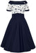 Oberteil in Weiss mit navyblauen Motiven: Leuchttürme, Wale, Anker etc.