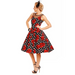 Kreiere einen fabelhaften Vintage-Look mit diesem Swingkleid im 50er-Jahre-Stil! Sein Herzausschnitt verleiht eine romantische Note, während der schwarze Mesh-Einsatz darüber eine verführerische Transparenz schafft. Der atemberaubende, weite Rock mit Kellerfalten sorgt für eine elegante, schwungvolle Silhouette – perfekt fürs Tanzen. Große weiße Polka Dots und rote Rosen auf schwarzem Grund machen dieses Kleid zum echten Hingucker voller nostalgischem Charme.