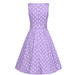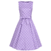 Verleihe deiner Garderobe einen verspielten Hauch von Vintage-Charme. Dieses bezaubernde Kleid aus einem weichen, hellvioletten Baumwollmischgewebe ist mit einem klassischen weißen Polka Dot-Print verziert. Das Kleid besticht durch seinen schmeichelnden U-Boot-Ausschnitt und das ärmellose Design und eignet sich perfekt für warme Tage oder zum Kombinieren mit Ihrem Lieblingscardigan. Zu den funktionalen Details gehören ein verdeckter Reißverschluss hinten für einen nahtlosen Sitz, praktische Seitentaschen und Gürtelschlaufen mit passendem Bindegürtel, der die Taille schön betont.