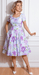 Swingkleid mit Lilien in Blau- und Lilatönen