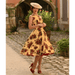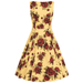 Charmantes Swingkleid in sanftem Gelb mit roten Rosen