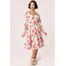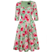 Das Swingkleid im 50er-Jahre-Stil besticht durch ein Meer aus pinken Rosen auf mintfarbenem Grund. Der verspielte herzförmige Vintage-Ausschnitt verleiht dem Outfit zusätzliche feminine Eleganz. Perfekt für festliche Anlässe oder romantische Alltagslooks mit Retro-Chic.