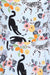 Swingkleid mit Katzen und floralem Muster