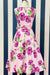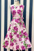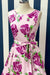 Swingkleid mit lila Rosen auf zartrosa Hintergrund