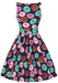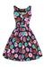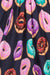 Weit schwingendes Kleid mit bunten Donuts auf schwarzem Grund