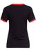 Farblich kontrastierender Bundabschluss in Rot am Armen und Hals