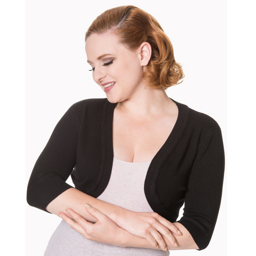 Angenehm weiches Strickjäckchen in Schwarz halblange Ärmel sehr weiches Material: 60% Viskose, 20% Polyamid, 20% Elasthan Verleihe deinem Retro-O...