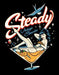 Schwarzes T-Shirt mit dem Steady-Martini-Girl und der Aufschrift „Vintage Classic“.