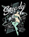 Schwarzes T-Shirt mit dem Steady-Pinup-Girl und der Aufschrift „Vintage Classic“ auf einem Dreiecksschild im Atomic-Stil