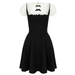 Das kleine Schwarze erhält mit dem Alice-Dress einen bezaubernden neuen Look. Dieses süße Minikleid besticht durch einen kontrastierenden weißen Netzeinsatz auf der Brust, der durch einen weißen Rüschenbesatz an den Rändern aufgewertet wird, und einen mittigen, mit zierlichen schwarzen Schleifen verzierten Schlitz. Die kurzen Puffärmel sind aus passendem weißem Netz gefertigt und mit elastischen Bündchen für zusätzlichen Komfort versehen. Das figurbetonte Oberteil schmeichelt der Taille und geht in einen ausgestellten Rock über – perfekt für diverse Anlässe.